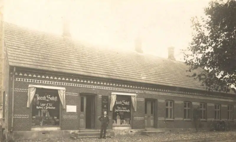 Søltofts købmandsbutik i Brørup, perioden 1900-1930. Foto: Lokalhistorisk Arkiv for Brørup og Omegn.